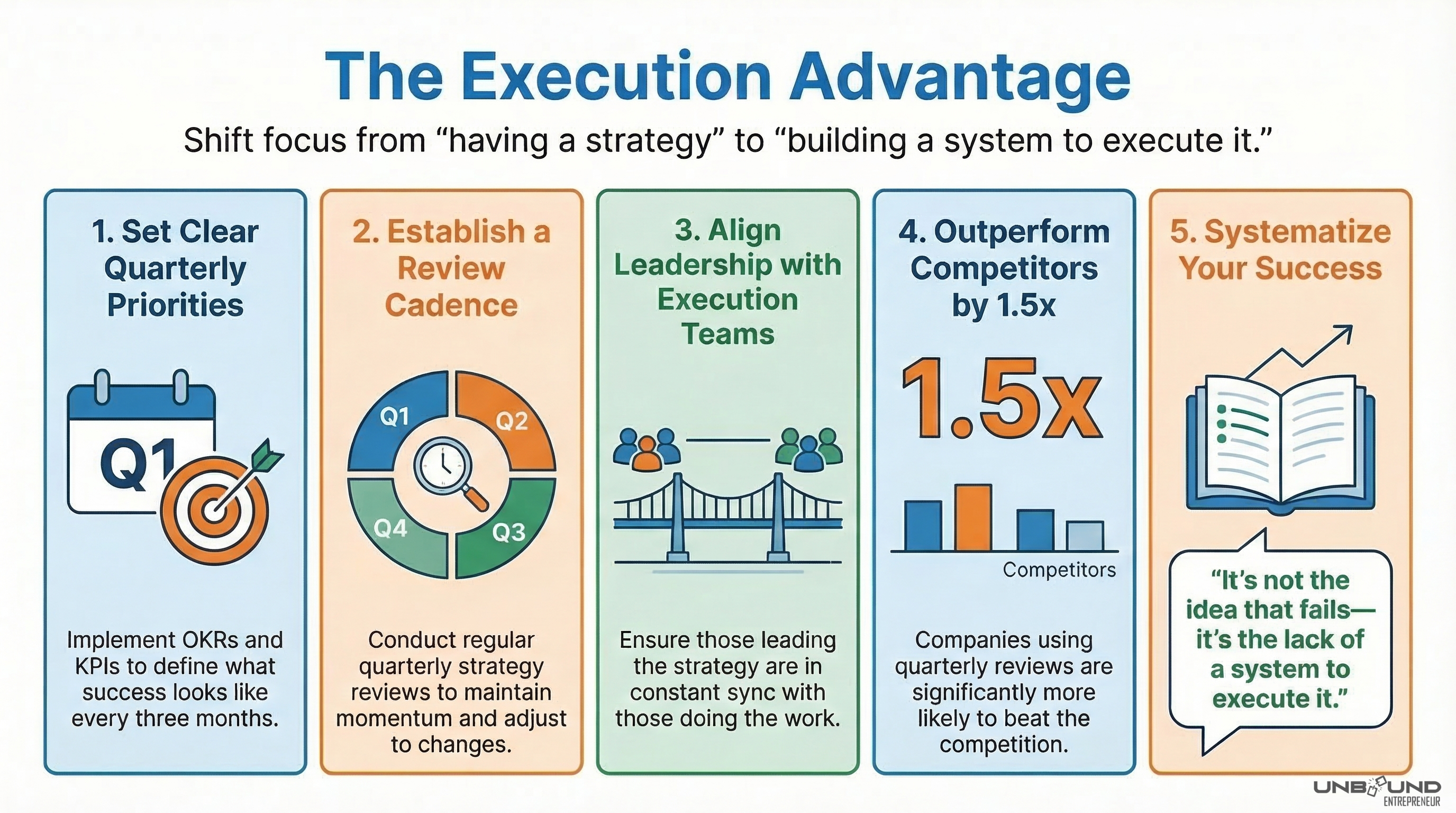 A mid-sized company implemented a quarterly execution rhythm: